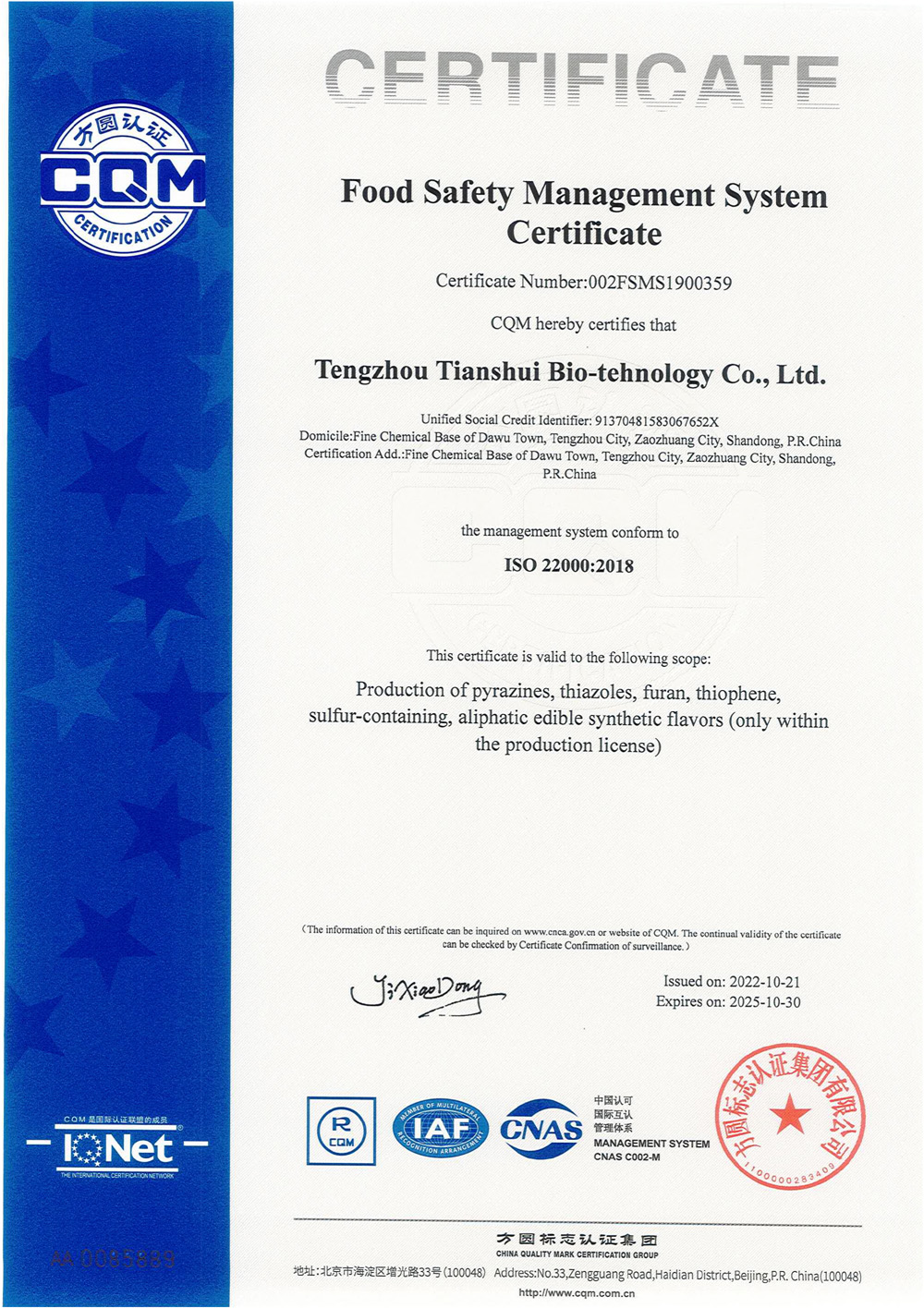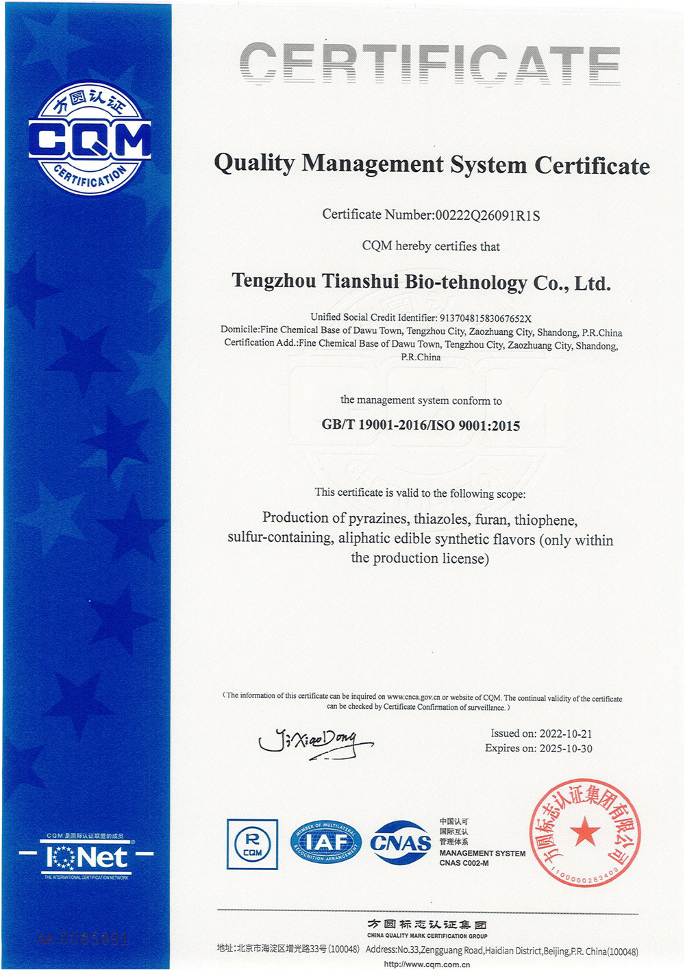 滕州市天水生物科技有限公司成立于2011年9月,是目前國內(nèi)雜環(huán)類合成食品香料、日化香料和醫(yī)藥中間體生產(chǎn)經(jīng)營的綜合性企業(yè)。坐落于山東省滕州市生物醫(yī)藥產(chǎn)業(yè)基地,總投資5000余萬元,占地面積約30000平方米,員工百余人。公司先后被評為高新技術(shù)企業(yè)、專精特新中小企業(yè)、科技型中小企業(yè),建有市級重點實驗室1處,并先后獲得ISO9001質(zhì)量體系認(rèn)證、ISO22000食品安全體系認(rèn)證、kosher認(rèn)證和Halal認(rèn)證。是香精香料及食品配料協(xié)會會員單位及滕州市中小企業(yè)協(xié)會理事單位。